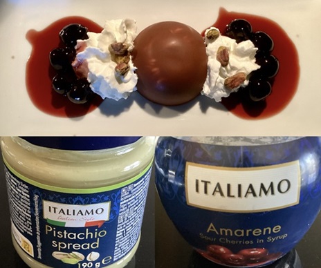 Uses ready made Pistachio paste and Cherries in syrup from Lidl